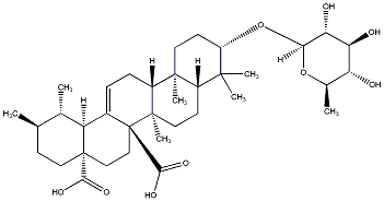 InChI=1S/C36H56O9/c1-18-10-15-35(30(40)41)16-17-36(31(42)43)21(25(35)19(18)2)8-9-23-33(6)13-12-24(32(4,5)22(33)11-14-34(23,36)7)45-29-28(39)27(38)26(37)20(3)44-29/h8,18-20,22-29,37-39H,9-17H2,1-7H3,(H,40,41)(H,42,43)/t18-,19+,20-,22+,23-,24+,25+,26-,27+,28-,29+,33+,34-,35+,36-/m1/s1 |