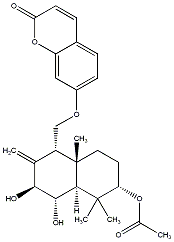 C=C1[C@H](O)[C@@H](O)[C@@H]2C(C)(C)[C@@H](OC(C)=O)CC[C@@]2(C)[C@H]1COc1ccc2ccc(=O)oc2c1 |