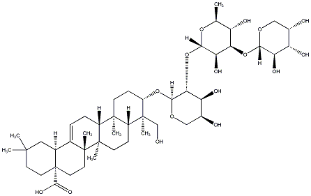 InChI=1S/C46H74O16/c1-22-30(50)35(61-37-33(53)31(51)25(48)19-57-37)34(54)38(59-22)62-36-32(52)26(49)20-58-39(36)60-29-11-12-42(4)27(43(29,5)21-47)10-13-45(7)28(42)9-8-23-24-18-41(2,3)14-16-46(24,40(55)56)17-15-44(23,45)6/h8,22,24-39,47-54H,9-21H2,1-7H3,(H,55,56)/t22-,24-,25-,26-,27+,28+,29-,30-,31-,32-,33+,34+,35+,36+,37-,38-,39-,42-,43-,44+,45+,46-/m0/s1 |