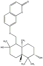 InChI=1S/C24H32O5/c1-22(2)18-9-12-24(4,27)19(23(18,3)11-10-20(22)25)14-28-16-7-5-15-6-8-21(26)29-17(15)13-16/h5-8,13,18-20,25,27H,9-12,14H2,1-4H3/t18-,19+,20-,23+,24+/m0/s1 |