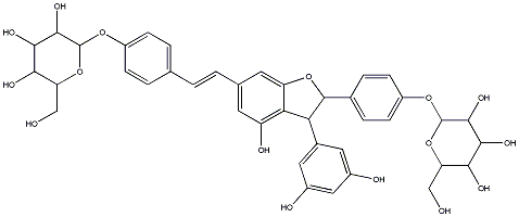 InChI=1S/C40H42O16/c41-16-28-32(46)34(48)36(50)39(55-28)52-24-7-3-18(4-8-24)1-2-19-11-26(45)31-27(12-19)54-38(30(31)21-13-22(43)15-23(44)14-21)20-5-9-25(10-6-20)53-40-37(51)35(49)33(47)29(17-42)56-40/h1-15,28-30,32-51H,16-17H2/b2-1+/t28-,29+,30+,32-,33+,34+,35-,36-,37+,38-,39+,40+/m1/s1 |