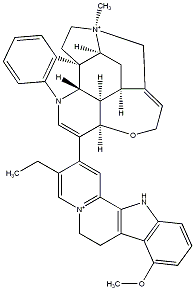 CCc1c[n+]2c(cc1C1=CN3c4ccccc4[C@@]45CC[N@@+]6(C)CC7=CCO[C@@H]1[C@@H]([C@H]34)[C@H]7C[C@@H]56)-c1[nH]c3cccc(OC)c3c1CC2 |
