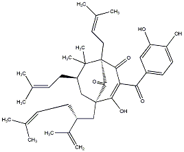C=C(C)[C@H](CC=C(C)C)C[C@@]12C[C@@H](CC=C(C)C)C(C)(C)[C@@](CC=C(C)C)(C(=O)C(C(=O)c3ccc(O)c(O)c3)=C1O)C2=O |