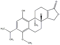 InChI=1S/C21H26O4/c1-11(2)14-9-17(22)18-13(19(14)24-4)5-6-16-15-10-25-20(23)12(15)7-8-21(16,18)3/h9,11,16,22H,5-8,10H2,1-4H3/t16-,21-/m0/s1 |