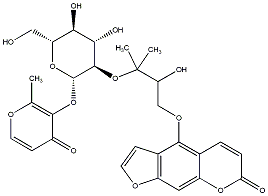 Cc1occc(=O)c1O[C@@H]1O[C@H](CO)[C@@H](O)[C@H](O)[C@H]1OC(C)(C)C(O)COc1c2ccoc2cc2oc(=O)ccc12 |