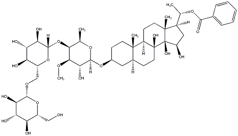 InChI=1S/C47H72O20/c1-21(62-40(57)23-9-7-6-8-10-23)26-18-30(49)47(59)45(26,4)15-13-29-44(3)14-12-25(17-24(44)11-16-46(29,47)58)64-43-37(56)39(60-5)38(22(2)63-43)67-42-36(55)34(53)32(51)28(66-42)20-61-41-35(54)33(52)31(50)27(19-48)65-41/h6-10,21-22,24-39,41-43,48-56,58-59H,11-20H2,1-5H3/t21-,22+,24-,25-,26+,27+,28+,29+,30+,31-,32-,33-,34-,35+,36+,37+,38-,39+,41+,42-,43-,44-,45+,46-,47+/m0/s1 |