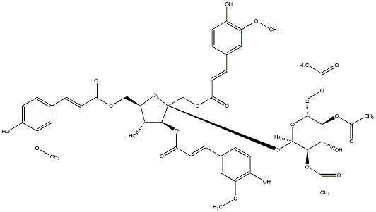 COc1cc(/C=C/C(=O)OC[C@H]2O[C@@](COC(=O)/C=C/c3ccc(O)c(OC)c3)(O[C@H]3O[C@H](COC(C)=O)[C@@H](OC(C)=O)[C@H](O)[C@H]3OC(C)=O)[C@@H](OC(=O)/C=C/c3ccc(O)c(OC)c3)[C@@H]2O)ccc1O |