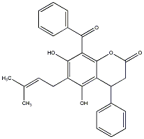 CC(C)=CCc1c(O)c(C(=O)c2ccccc2)c2c(c1O)C(c1ccccc1)CC(=O)O2 |