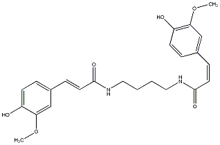 InChI=1S/C24H28N2O6/c1-31-21-15-17(5-9-19(21)27)7-11-23(29)25-13-3-4-14-26-24(30)12-8-18-6-10-20(28)22(16-18)32-2/h5-12,15-16,27-28H,3-4,13-14H2,1-2H3,(H,25,29)(H,26,30)/b11-7-,12-8+ |