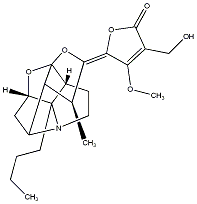 CCCCC12[C@@H]3CC4C5[C@H](C)/C(=C6/OC(=O)C(CO)=C6OC)OC5(O3)[C@@H]1CCN42 |
