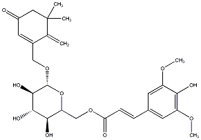 InChI=1S/C27H34O11/c1-14-16(10-17(28)11-27(14,2)3)12-37-26-25(33)24(32)23(31)20(38-26)13-36-21(29)7-6-15-8-18(34-4)22(30)19(9-15)35-5/h6-10,20,23-26,30-33H,1,11-13H2,2-5H3/b7-6+/t20-,23+,24+,25-,26-/m1/s1 |