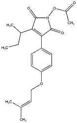 CCC(C)C1=C(c2ccc(OCC=C(C)C)cc2)C(=O)N(OC(C)=O)C1=O |