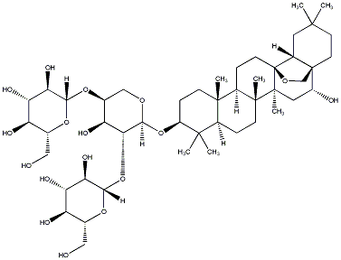 InChI=1S/C47H78O17/c1-41(2)14-15-46-21-59-47(27(46)16-41)13-9-26-43(5)11-10-29(42(3,4)25(43)8-12-44(26,6)45(47,7)17-28(46)50)63-40-37(64-39-36(57)34(55)31(52)23(19-49)61-39)32(53)24(20-58-40)62-38-35(56)33(54)30(51)22(18-48)60-38/h22-40,48-57H,8-21H2,1-7H3/t22-,23-,24+,25+,26-,27-,28-,29+,30+,31+,32+,33+,34+,35-,36-,37-,38+,39+,40+,43-,44-,45+,46-,47+/m1/s1 |
