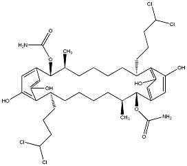 C[C@H]1CCCC[C@@H](CCCC(Cl)Cl)c2c(O)cc(cc2O)[C@H](OC(N)=O)[C@@H](C)CCCC[C@@H](CCCC(Cl)Cl)c2c(O)cc(cc2O)[C@@H]1OC(N)=O |