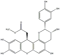 COC(=O)C[C@@H]1c2cc(O)c(O)cc2Oc2cc(O)c3c(c21)O[C@H](c1ccc(O)c(O)c1)[C@H](O)C3 |