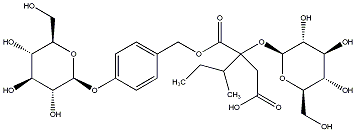 InChI=1S/C27H40O16/c1-3-12(2)27(8-17(30)31,43-25-23(37)21(35)19(33)16(10-29)42-25)26(38)39-11-13-4-6-14(7-5-13)40-24-22(36)20(34)18(32)15(9-28)41-24/h4-7,12,15-16,18-25,28-29,32-37H,3,8-11H2,1-2H3,(H,30,31)/t12-,15-,16-,18-,19-,20+,21+,22-,23-,24-,25+,27+/m1/s1 |