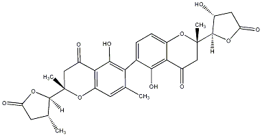 InChI=1S/C30H30O11/c1-12-7-19-24(17(33)10-29(3,41-19)27-13(2)8-20(34)38-27)26(37)22(12)14-5-6-18-23(25(14)36)16(32)11-30(4,40-18)28-15(31)9-21(35)39-28/h5-7,13,15,27-28,31,36-37H,8-11H2,1-4H3/t13-,15-,27-,28-,29+,30+/m1/s1 |