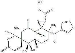 InChI=1S/C27H32O9/c1-22(2)26(11-8-18(29)35-22)13-17(28)24(4)16(25(26,5)32)7-10-23(3,19(30)15-9-12-34-14-15)27(24)20(36-27)21(31)33-6/h8-9,11-12,14,16,20,32H,7,10,13H2,1-6H3/t16-,20+,23-,24-,25-,26-,27+/m0/s1 |