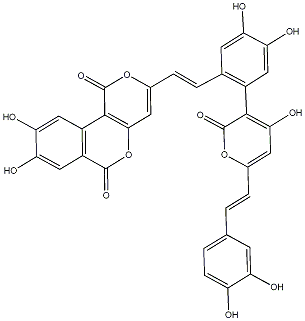 InChI=1S/C33H20O13/c34-21-6-2-14(7-22(21)35)1-4-16-9-27(40)29(32(42)44-16)18-11-24(37)23(36)8-15(18)3-5-17-10-28-30(33(43)45-17)19-12-25(38)26(39)13-20(19)31(41)46-28/h1-13,34-40H/b4-1+,5-3+ |