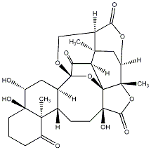 InChI=1S/C28H34O11/c1-22-10-17-24(3)28-18(22)19(31)27(39-28,36-11-14(22)20(32)37-17)13-9-16(30)25(34)7-4-5-15(29)23(25,2)12(13)6-8-26(28,35)21(33)38-24/h12-14,16-18,30,34-35H,4-11H2,1-3H3/t12-,13+,14-,16+,17+,18-,22+,23-,24-,25-,26+,27?,28-/m0/s1 |