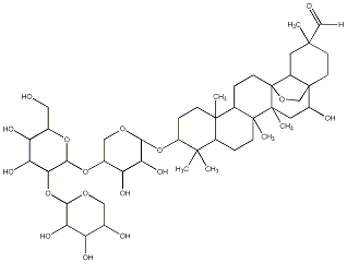 InChI=1S/C46H74O17/c1-40(2)25-7-11-43(5)26(8-12-46-27-15-41(3,20-48)13-14-45(27,21-59-46)28(50)16-44(43,46)6)42(25,4)10-9-29(40)62-37-35(56)32(53)24(19-58-37)61-39-36(33(54)31(52)23(17-47)60-39)63-38-34(55)30(51)22(49)18-57-38/h20,22-39,47,49-56H,7-19,21H2,1-6H3/t22-,23-,24-,25+,26+,27+,28+,29+,30+,31-,32+,33+,34+,35+,36-,37-,38+,39-,41-,42-,43-,44+,45-,46+/m1/s1 |