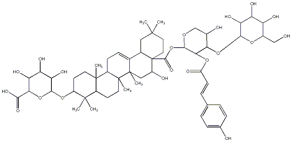 InChI=1S/C56H80O21/c1-51(2)20-21-56(50(70)77-49-45(74-36(61)15-10-26-8-11-27(58)12-9-26)43(30(59)25-71-49)75-47-41(66)38(63)37(62)31(24-57)72-47)29(22-51)28-13-14-33-53(5)18-17-35(73-48-42(67)39(64)40(65)44(76-48)46(68)69)52(3,4)32(53)16-19-54(33,6)55(28,7)23-34(56)60/h8-13,15,29-35,37-45,47-49,57-60,62-67H,14,16-25H2,1-7H3,(H,68,69)/b15-10+/t29-,30+,31+,32-,33-,34+,35+,37-,38-,39+,40+,41+,42-,43+,44+,45+,47-,48+,49+,53+,54+,55+,56+/m1/s1 |