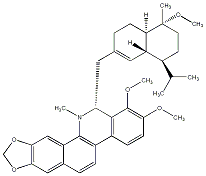 InChI=1S/C37H45NO5/c1-21(2)24-14-15-37(3,41-7)29-12-8-22(16-28(24)29)17-30-34-25(11-13-31(39-5)36(34)40-6)26-10-9-23-18-32-33(43-20-42-32)19-27(23)35(26)38(30)4/h9-11,13,16,18-19,21,24,28-30H,8,12,14-15,17,20H2,1-7H3/t24-,28+,29+,30+,37+/m0/s1 |