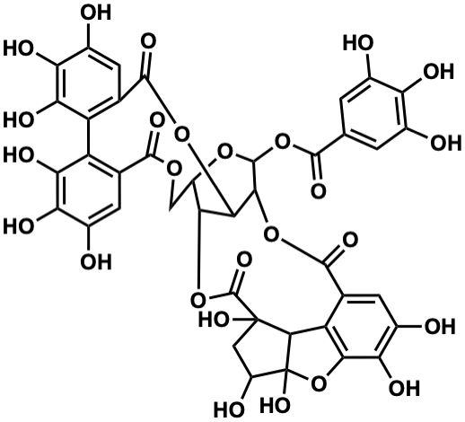 InChI=1S/C40H30O26/c41-12-1-8(2-13(42)22(12)47)33(53)65-37-31-30-28(64-38(57)39(58)6-18(46)40(59)32(39)21-11(36(56)63-31)5-16(45)25(50)29(21)66-40)17(61-37)7-60-34(54)9-3-14(43)23(48)26(51)19(9)20-10(35(55)62-30)4-15(44)24(49)27(20)52/h1-5,17-18,28,30-32,37,41-52,58-59H,6-7H2 |