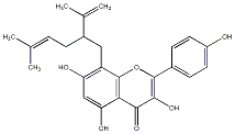 C=C(C)C(CC=C(C)C)Cc1c(O)cc(O)c2c(=O)c(O)c(-c3ccc(O)cc3)oc12 |