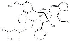 InChI=1S/C36H40N2O9/c1-20(2)17-27(39)37-26-11-8-16-38(26)33(40)30-28(21-9-6-5-7-10-21)35(42)29-24(18-25-31(32(29)44-4)46-19-45-25)47-36(30,34(35)41)22-12-14-23(43-3)15-13-22/h5-7,9-10,12-15,18,20,26,28,30,34,41-42H,8,11,16-17,19H2,1-4H3,(H,37,39)/t26-,28+,30-,34-,35-,36+/m1/s1 |