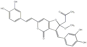 COC1(CC(C)=O)Oc2cc(/C=C/c3ccc(O)c(O)c3)oc(=O)c2/C1=C/c1ccc(O)c(O)c1 |