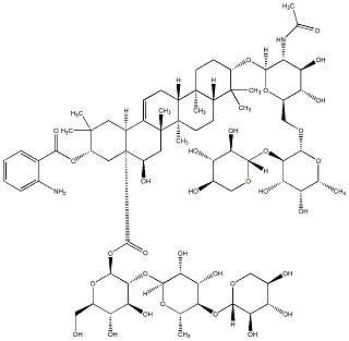 CC(=O)N[C@H]1[C@H](O[C@H]2CC[C@]3(C)[C@H]4CC=C5[C@@H]6CC(C)(C)[C@@H](OC(=O)c7ccccc7N)C[C@]6(C(=O)O[C@@H]6O[C@H](CO)[C@@H](O)[C@H](O)[C@H]6O[C@@H]6O[C@@H](C)[C@H](O[C@@H]7OC[C@@H](O)[C@H](O)[C@H]7O)[C@@H](O)[C@H]6O)[C@H](O)C[C@@]5(C)[C@]4(C)CC[C@H]3C2(C)C)O[C@H](CO[C@@H]2O[C@H](C)[C@H](O)[C@H](O)[C@H]2O[C@@H]2OC[C@@H](O)[C@H](O)[C@H]2O)[C@@H](O)[C@@H]1O |