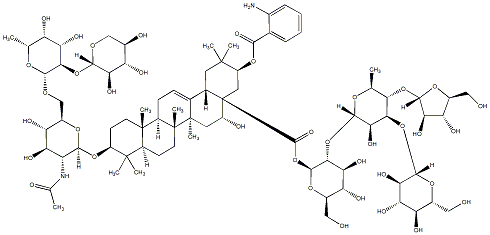 CC(=O)N[C@H]1[C@H](O[C@H]2CC[C@]3(C)[C@H]4CC=C5[C@@H]6CC(C)(C)[C@@H](OC(=O)c7ccccc7N)C[C@]6(C(=O)O[C@@H]6O[C@H](CO)[C@@H](O)[C@H](O)[C@H]6O[C@@H]6O[C@@H](C)[C@H](O[C@@H]7O[C@@H](CO)[C@H](O)[C@H]7O)[C@@H](O[C@@H]7O[C@H](CO)[C@@H](O)[C@H](O)[C@H]7O)[C@H]6O)[C@H](O)C[C@@]5(C)[C@]4(C)CC[C@H]3C2(C)C)O[C@H](CO[C@@H]2O[C@H](C)[C@H](O)[C@H](O)[C@H]2O[C@@H]2OC[C@@H](O)[C@H](O)[C@H]2O)[C@@H](O)[C@@H]1O |