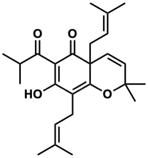 CC(C)=CCC1=C2OC(C)(C)C=CC2(CC=C(C)C)C(=O)C(C(=O)C(C)C)=C1O |