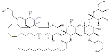 CCCCCCCCCCCC(=O)O[C@H]1[C@H](O[C@@H]2[C@@H](O)[C@H]3OC(=O)CCCCCCCCC[C@H](CCCCC)O[C@@H]4O[C@H](C)[C@@H](O)[C@H](O)[C@H]4O[C@@H]3O[C@H]2C)O[C@@H](C)[C@H](O[C@@H]2O[C@@H](C)[C@H](OC(=O)CCC)[C@@H](O)[C@H]2O[C@@H]2O[C@H](CO)[C@@H](O)[C@H](O)[C@H]2O)[C@H]1O |