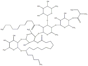 InChI=1S/C61H106O24/c1-10-13-15-16-18-22-27-31-40(63)80-55-54(85-57-46(69)43(66)41(64)33(5)73-57)51(82-58-47(70)45(68)49(35(7)75-58)81-56(72)32(4)12-3)37(9)77-61(55)83-50-36(8)76-59-48(71)52(50)79-39(62)30-26-23-20-17-19-21-25-29-38(28-24-14-11-2)78-60-53(84-59)44(67)42(65)34(6)74-60/h32-38,41-55,57-61,64-71H,10-31H2,1-9H3/t32-,33-,34+,35+,36-,37+,38-,41-,42+,43-,44-,45-,46+,47+,48-,49-,50-,51+,52-,53-,54-,55-,57+,58-,59+,60-,61-/m1/s1 |