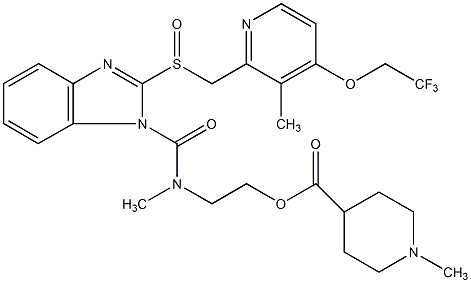 Cc1c(OCC(F)(F)F)ccnc1CS(=O)c1nc2ccccc2n1C(=O)N(C)CCOC(=O)C1CCN(C)CC1 |