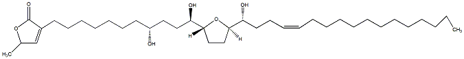 InChI=1S/C37H66O6/c1-3-4-5-6-7-8-9-10-11-12-13-14-18-21-24-33(39)35-27-28-36(43-35)34(40)26-25-32(38)23-20-17-15-16-19-22-31-29-30(2)42-37(31)41/h14,18,29-30,32-36,38-40H,3-13,15-17,19-28H2,1-2H3/b18-14-/t30-,32+,33+,34+,35+,36+/m0/s1 |