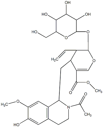 InChI=1S/C28H37NO12/c1-5-15-17(9-19-16-10-21(37-3)20(32)8-14(16)6-7-29(19)13(2)31)18(26(36)38-4)12-39-27(15)41-28-25(35)24(34)23(33)22(11-30)40-28/h5,8,10,12,15,17,19,22-25,27-28,30,32-35H,1,6-7,9,11H2,2-4H3/t15-,17+,19+,22-,23-,24+,25+,27+,28+/m1/s1 |