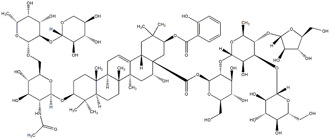 CC(=O)N[C@H]1[C@H](O[C@H]2CC[C@]3(C)[C@H]4CC=C5[C@@H]6CC(C)(C)[C@@H](OC(=O)c7ccccc7O)C[C@]6(C(=O)O[C@@H]6O[C@H](CO)[C@@H](O)[C@H](O)[C@H]6O[C@@H]6O[C@@H](C)[C@H](O[C@@H]7O[C@@H](CO)[C@H](O)[C@H]7O)[C@@H](O[C@@H]7O[C@H](CO)[C@@H](O)[C@H](O)[C@H]7O)[C@H]6O)[C@H](O)C[C@@]5(C)[C@]4(C)CC[C@H]3C2(C)C)O[C@H](CO[C@@H]2O[C@H](C)[C@H](O)[C@H](O)[C@H]2O[C@@H]2OC[C@@H](O)[C@H](O)[C@H]2O)[C@@H](O)[C@@H]1O |