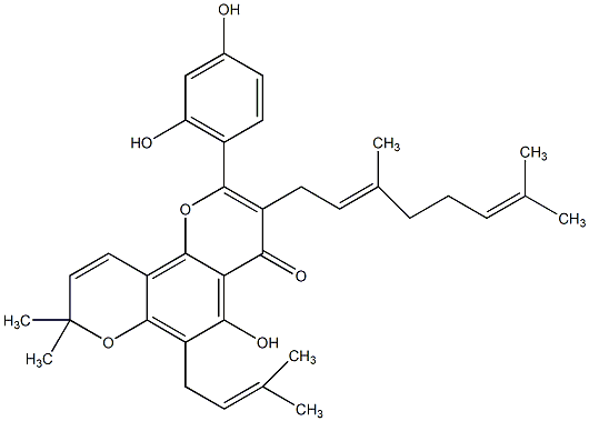 CC(C)=CCC/C(C)=C/Cc1c(-c2ccc(O)cc2O)oc2c3c(c(CC=C(C)C)c(O)c2c1=O)OC(C)(C)C=C3 |