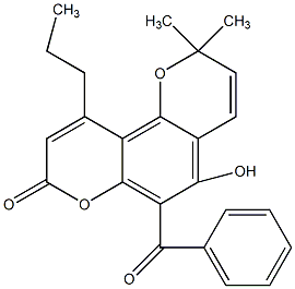 CCCc1cc(=O)oc2c(C(=O)c3ccccc3)c(O)c3c(c12)OC(C)(C)C=C3 |