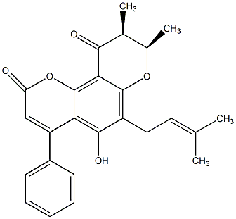 CC(C)=CCc1c2c(c3oc(=O)cc(-c4ccccc4)c3c1O)C(=O)[C@@H](C)[C@@H](C)O2 |