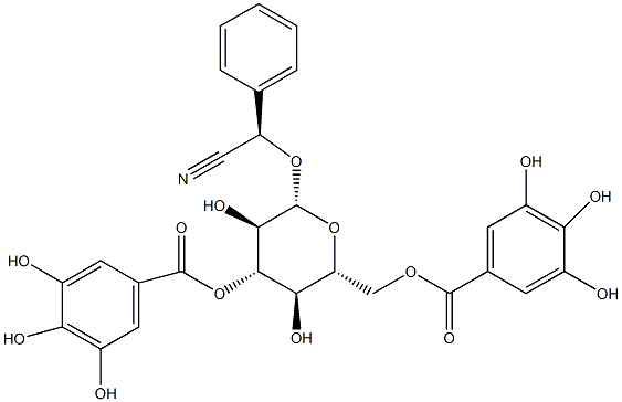 N#C[C@H](O[C@@H]1O[C@H](COC(=O)c2cc(O)c(O)c(O)c2)[C@@H](O)[C@H](OC(=O)c2cc(O)c(O)c(O)c2)[C@H]1O)c1ccccc1 |