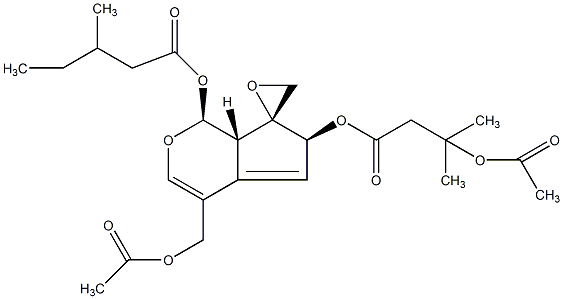 CCC(C)CC(=O)O[C@@H]1OC=C(COC(C)=O)C2=C[C@H](OC(=O)CC(C)(C)OC(C)=O)[C@]3(CO3)[C@H]21 |