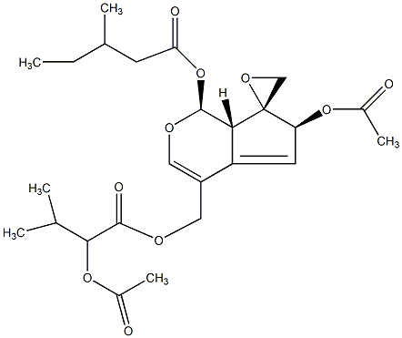 CCC(C)CC(=O)O[C@@H]1OC=C(COC(=O)C(OC(C)=O)C(C)C)C2=C[C@H](OC(C)=O)[C@]3(CO3)[C@H]21 |