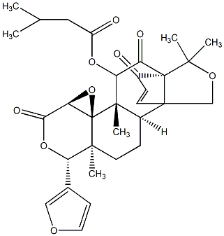 InChI=1S/C31H36O9/c1-16(2)13-20(33)38-23-21(34)30-19(32)8-11-29(30,15-37-26(30,3)4)18-7-10-27(5)22(17-9-12-36-14-17)39-25(35)24-31(27,40-24)28(18,23)6/h8-9,11-12,14,16,18,22-24H,7,10,13,15H2,1-6H3/t18-,22-,23-,24+,27-,28-,29?,30-,31+/m0/s1 |