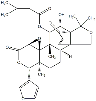 CC(C)CC(=O)OC1[C@H](O)[C@]23C(=O)C=CC2(COC3(C)C)[C@H]2CC[C@@]3(C)[C@H](c4ccoc4)OC(=O)[C@H]4O[C@]43[C@]12C |