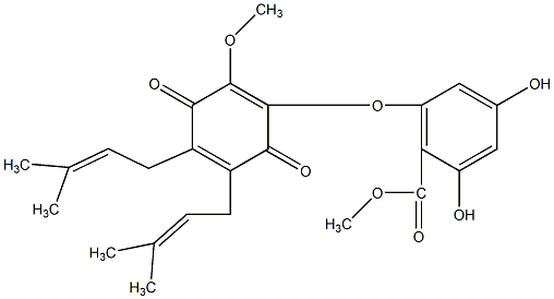 COC(=O)c1c(O)cc(O)cc1OC1=C(OC)C(=O)C(CC=C(C)C)=C(CC=C(C)C)C1=O |