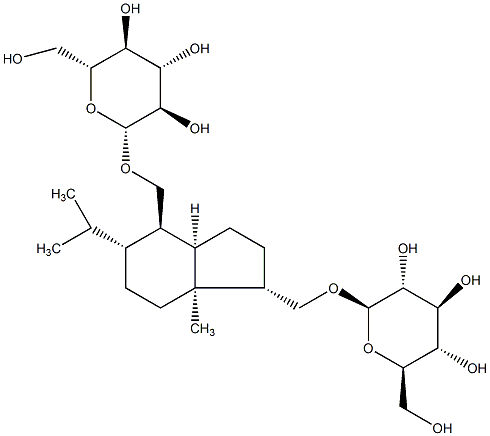 InChI=1S/C27H48O12/c1-12(2)14-6-7-27(3)13(10-36-25-23(34)21(32)19(30)17(8-28)38-25)4-5-16(27)15(14)11-37-26-24(35)22(33)20(31)18(9-29)39-26/h12-26,28-35H,4-11H2,1-3H3/t13-,14-,15-,16-,17-,18-,19-,20-,21+,22+,23-,24-,25-,26-,27+/m1/s1 |